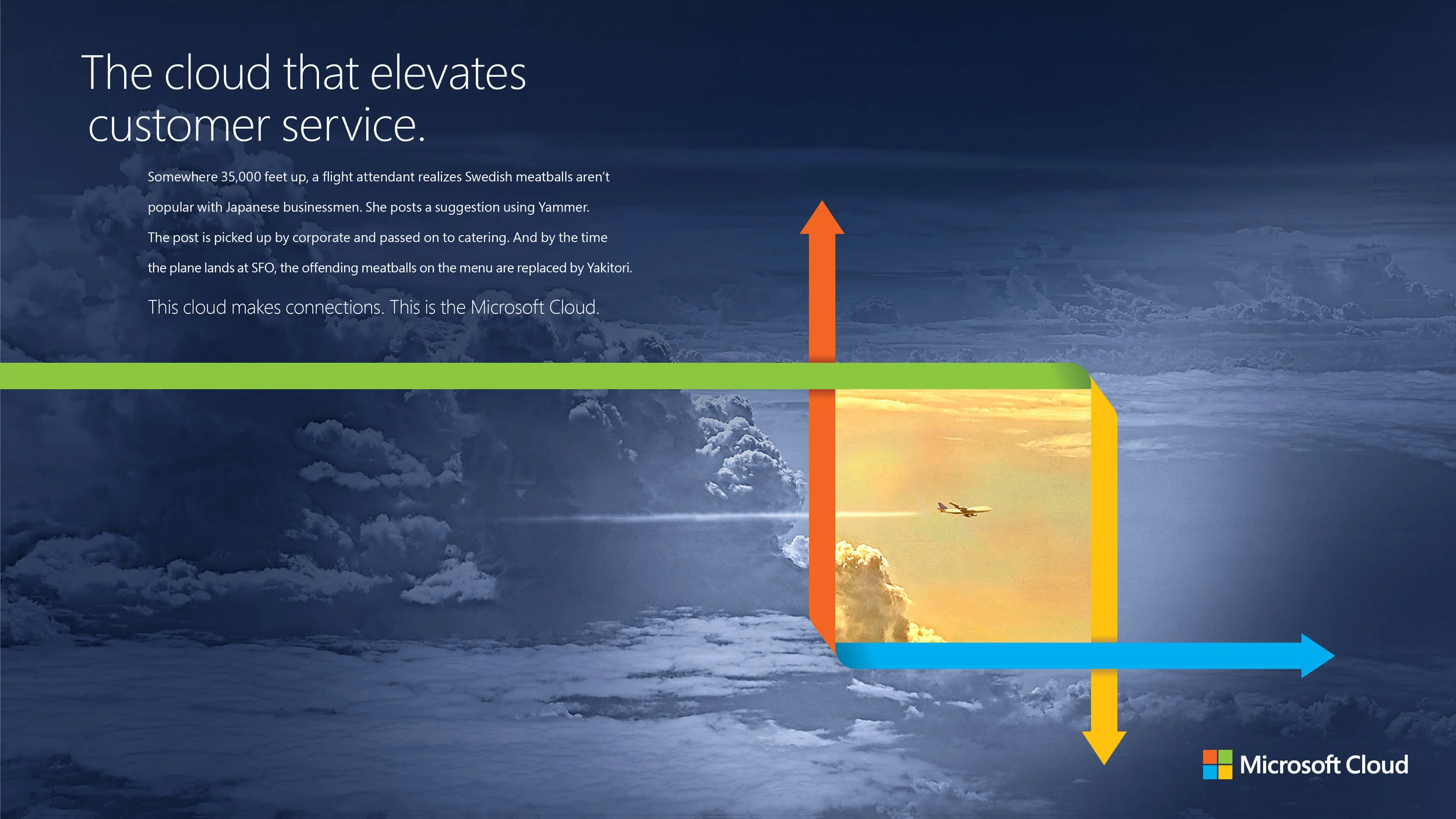 I led the pitch that won this global launch for the Microsoft Cloud. The win doubled the size of the agency at the time. We created over 900 pieces of content that extended across the globe and resulted in one of the biggest and most effective enterprise campaigns Microsoft has produced.